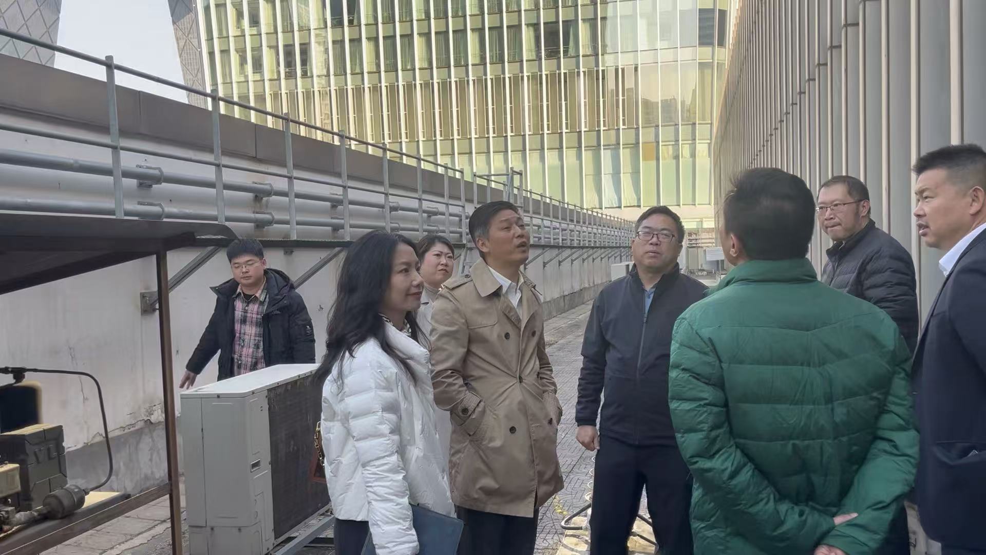 2025年11月,北京商务中心区管理委员会(CBD管委会)卓处长率队赴北京CBD核心区域的中国国际贸易中心(国贸)开展建筑外立面安全创新监测技术示范工程专项调研。此次调研聚焦智能化、无损化、数据化等前沿监测技术在超高层建筑外立面安全监测中的集成应用,重点考察项目联动执行的技术可行性、管理协同机制及示范推广价值,旨在为北京CBD打造全球领先的智慧商务区提供智能安全技术支撑。